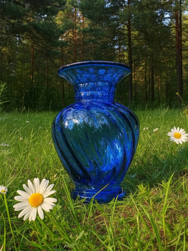 گلدون شیشه‌ای آبی