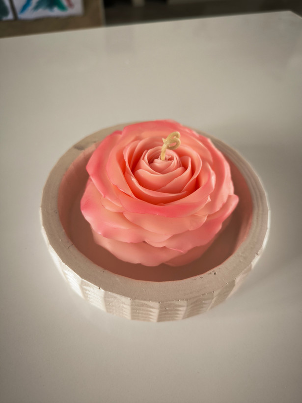 این شمع رز صورتی در رنگ و اندازه دلخواه شما قابل سفارش است